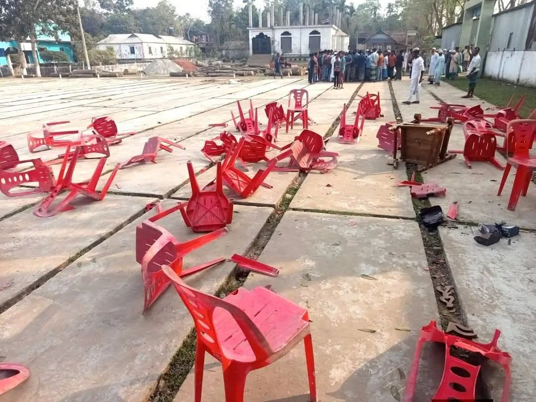 ময়মনসিংহের তারাকান্দা উপজেলার ডাকুয়া ইউনিয়নের হরিয়াঘাই বাজার ঈদগাহ মাঠে এমপি মুফতি মুহাম্মদুল্লাহর আগমন উপলক্ষে আয়োজিত সংবর্ধনা ও ইফতার পার্টির আগে চেয়ার-টেবিল ভাঙচুরের ঘটনা ঘটেছে। মঙ্গলবার (৩ মার্চ ২০২৬) বিকেল আনুমানিক ৩টা ৪৫ মিনিটে এ ঘটনা ঘটে বলে আয়োজকরা জানিয়েছেন।
