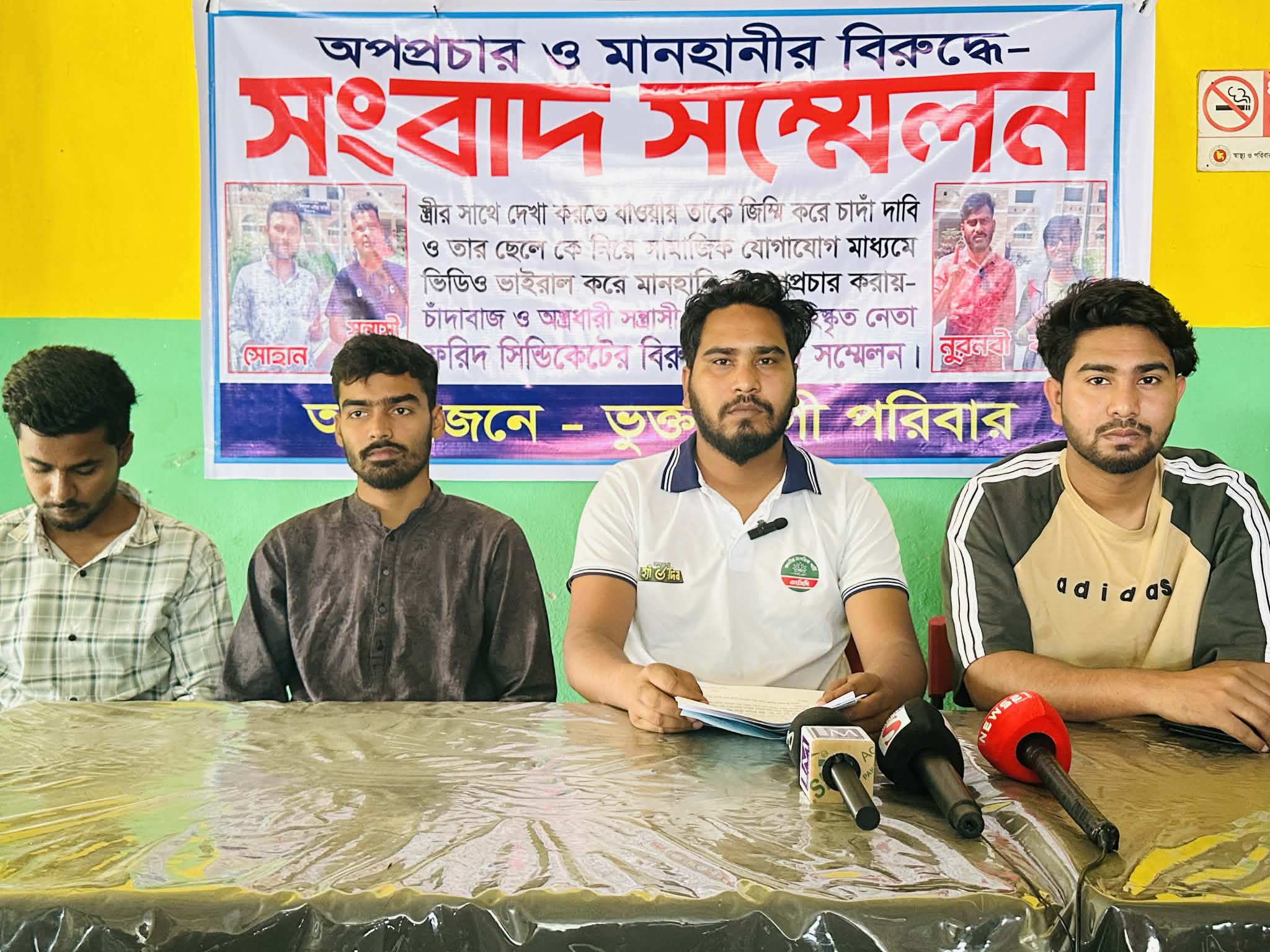 সিরাজগঞ্জের সলঙ্গায় এক ব্যবসায়ীকে সস্ত্রীক জিম্মি করে চাঁদা দাবি, মারধর এবং স্বর্ণালঙ্কার ও নগদ টাকা লুটে নিয়ে সামাজিক যোগাযোগ মাধ্যমে ভিডিও দিয়ে অপ্রপ্রচার করায় সলঙ্গার বহিস্কৃত নেতা ফরিদ মেম্বারের বিরুদ্ধে সংবাদ সম্মেলন করেছে ভুক্তভোগী পরিবার।