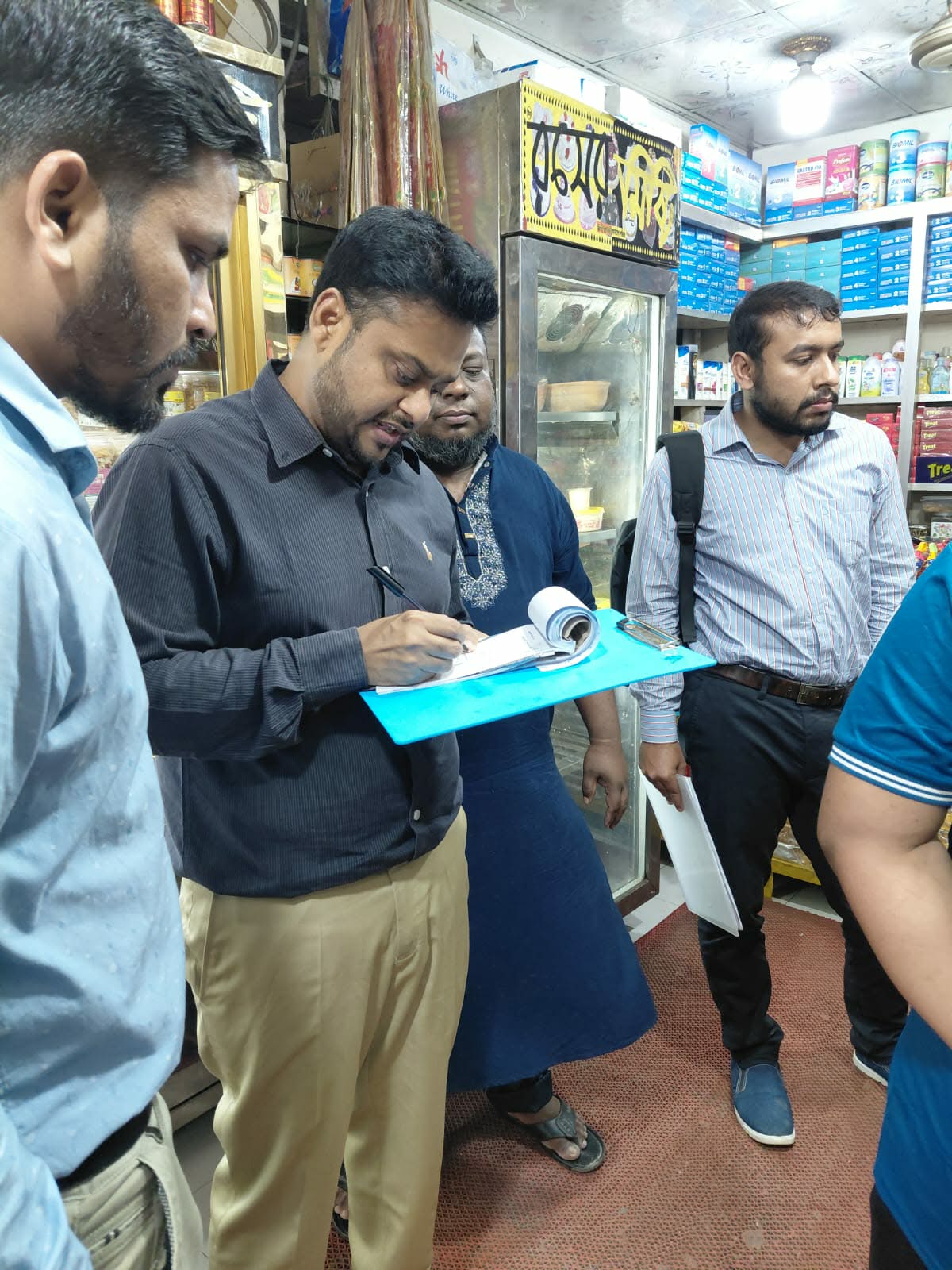 আজকের অভিযানে একটি প্রতিষ্ঠানে পণ্যের লেবেলিংয়ে মূল্য ও মেয়াদ উল্লেখ না থাকায় আইন অনুযায়ী জরিমানা করা হয়েছে এবং ভবিষ্যতে এ ধরনের অনিয়ম না করার জন্য সতর্ক করা হয়েছে।”