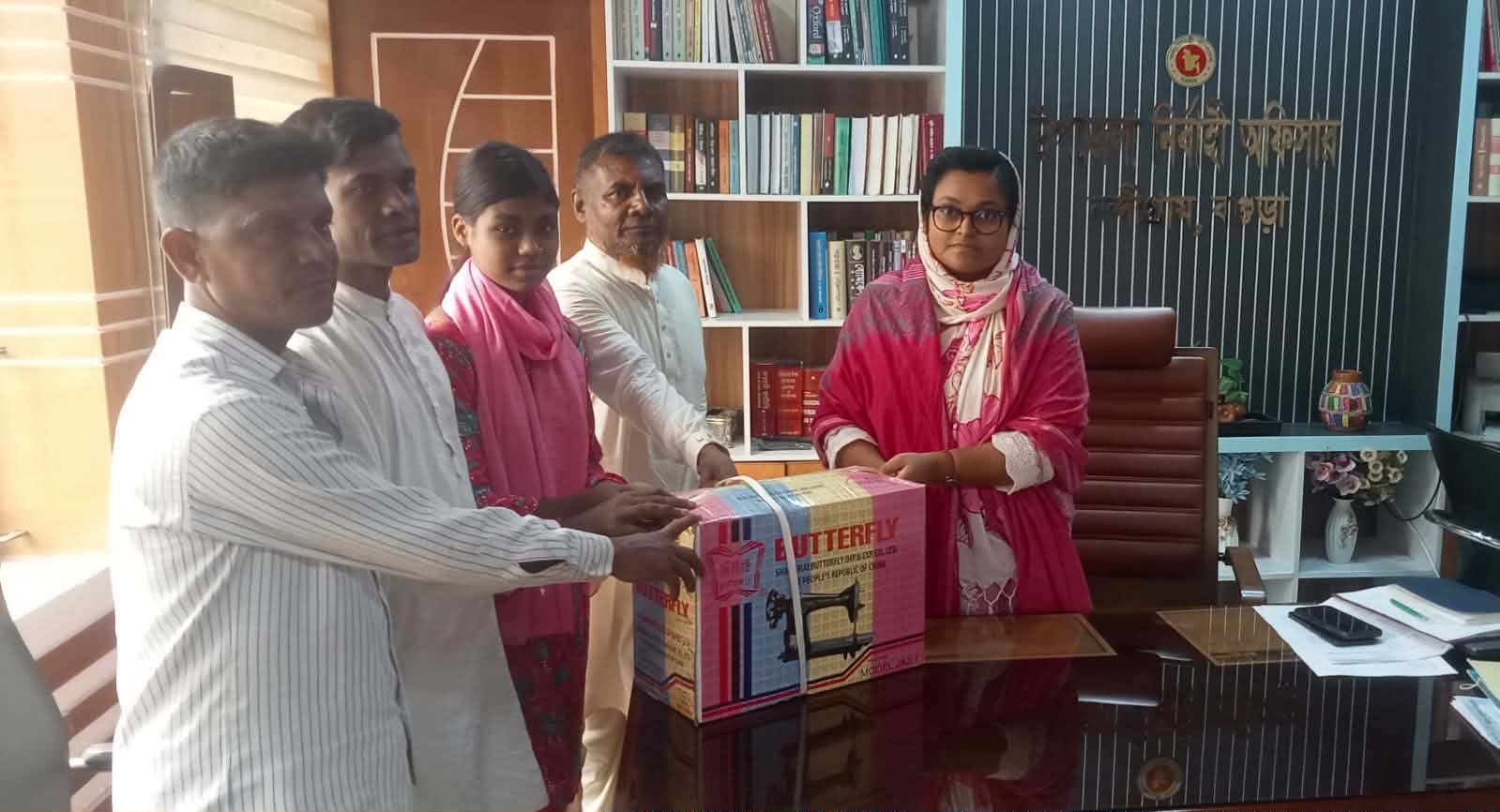 বগুড়ার নন্দীগ্রামে এক অসহায় পরিবারের সদস্যদের মাঝে সেলাই মেশিন প্রদান করা হয়েছে।