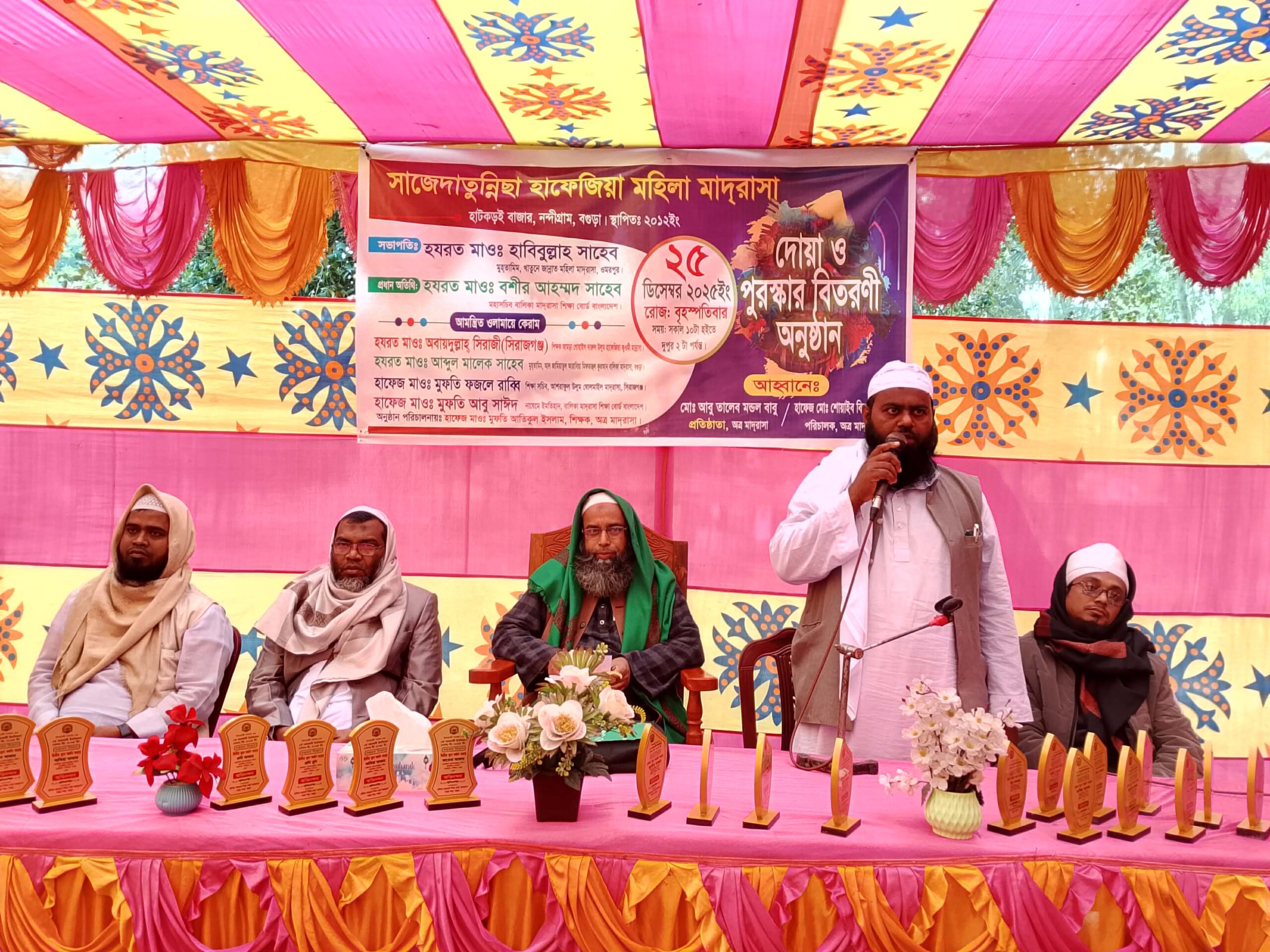 বগুড়া জেলার নন্দীগ্রাম উপজেলার ৫নং ভাটগ্রাম ইউনিয়নের হাটকড়ই বাজারে সাজেদাতুন্নিছা হাফেজিয়া মহিলা মাদ্রাসা দুপুর ১২টার সময় মাদ্রাসা ময়দানে দোয়া ও পুরস্কার বিতরণে অনুষ্ঠান অনুষ্ঠিত হয়। বালিকা মাদ্রাসার শিক্ষা বোর্ড বাংলাদেশের অধীনে অনুষ্ঠিত ২য় মারকাযী ইমতিহানে হাটকড়ই বাজারে সাজেদাতুন্নিছা হাফেজিয়া মহিলা মাদ্রাসা হতে বোর্ড পরীক্ষায় অংশগ্রহণ করে ৩৪জন শিক্ষার্থী।তার মধ্যে প্রথম মেধাতালিকায় চান্স পেয়েছেন ২৪জন শিক্ষার্থী এবং বালিকার মাদ্রাসা শিক্ষা বোর্ড বাংলাদেশের প্রথম স্থান অধিকার করেন সাজেদাতুন্নিছা হাফেজিয়া মহিলা মাদ্রাসা।শিক্ষার্থীদের বালিকা মাদ্রাসা শিক্ষা বোর্ড বাংলাদেশ থেকে পুরস্কার প্রদান করা হয় এবং সেই সাথে মাদ্রাসা সকল শিক্ষার্থী ও শিক্ষকদের মাদ্রাসার জন্য দোয়া করা হয়।
