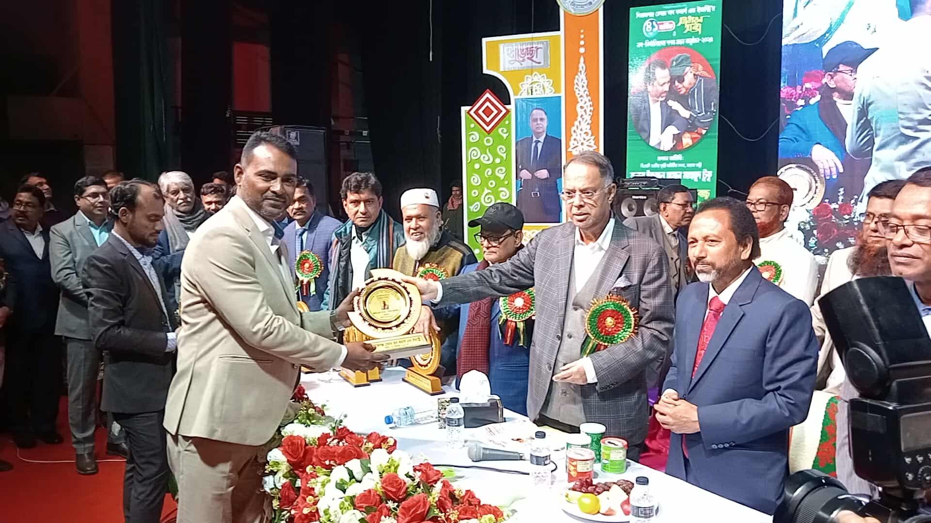 শনিবার ২৭ ডিসেম্বর ২০২৫.দিনব্যাপী জমকালো অনুষ্ঠানের মধ্য দিয়ে অনুষ্ঠিত হলো চেম্বার অব কমার্স এন্ড ইন্ডাস্ট্রিজ এর নবনির্বাচিতদের শপথ গ্রহণ ও মনোজ্ঞ সাংস্কৃতিক অনুষ্ঠান ২০২৫। সিরাজগঞ্জ চেম্বার অব কমার্স এন্ড ইন্ডাস্ট্রিজ এর নবনির্বাচিতদের শপথ গ্রহণ অনুষ্ঠান কে কেন্দ্র করে সিরাজগঞ্জ জেলা শিল্পকলা একাডেমিতে সকাল থেকে মধ্যরাত পর্যন্ত ছিল উপচে পড়া ভিড়। এ সময় সিরাজগঞ্জ চেম্বার অব কমার্স এন্ড ইন্ডাস্ট্রিজ এর নবনির্বাচিত প্রতিনিধিগণ, আমন্ত্রিত অতিথিবৃন্দ এবং সাধারণ জনগণ এই অনুষ্ঠান উপভোগ করেন। প্রধান অতিথি হিসেবে উপস্থিত ছিলেন সিরাজগঞ্জের সিংহ পুরুষ খ্যাত সাবেক মন্ত্রী জনাব মোঃ ইকবাল হাসান মাহমুদ টুকু মহোদয়। সিরাজগঞ্জ জেলা শিল্পকলা একাডেমিতে অনুষ্ঠিত চেম্বার অব কমার্স এন্ড ইন্ডাস্ট্রিজ এর ৪১ তম সভা২০২৫ এ, সম্মাননা স্মারক সাবেক মন্ত্রী ইকবাল হাসান মাহমুদ টুকু মহোদয়ের হাত থেকে গ্রহণ করেন, বিশিষ্ট ব্যবসায়ী, সিরাজগঞ্জ চেম্বার অব কমার্স এন্ড ইন্ডাস্ট্রিজ এর নির্বাচনে সর্বোচ্চ ভোট পেয়ে পরিচালক পদে বিজয়ী " মো: শরিফুল ইসলাম আলামিন । ক্রেস্ট পেয়ে তিনি অনুভূতি ব্যক্ত করেন, আজকের এই সম্মাননা সকল ভোটার ভাইদের, যারা আমাকে বিপুল পরিমাণ ভোট দিয়ে জয় যুক্ত করেছেন। সম্মান দেওয়ার মালিক আল্লাহ, আল্লাহর কাছে কৃতজ্ঞতা প্রকাশ করছি। সকাল ১০ টায় পবিত্র কোরআন তেলাওয়াত ও গীতা পাঠের মধ্য দিয়ে অনুষ্ঠান শুরু হয়। ফুলের তোড়া দিয়ে প্রধান অতিথি সাবেক মন্ত্রী জনাব মো: ইকবাল হাসান মাহমুদ টুকু মহোদয় কে বরণ করে নেওয়া হয়। এরপর সিরাজগঞ্জ চেম্বার অব কমার্স এন্ড ইন্ডাস্ট্রিজ এর নবনির্বাচিতদের একে একে আসন গ্রহণ করানো হয় এবং নির্বাচিত প্রতিনিধিবৃন্দদের শপথ বাক্য পাঠ করানো হয়। এরপর সকল প্রতিনিধিগণ কে প্রধান অতিথি মহোদয় সম্মাননা ক্রেস্ট, একে. একে হাতে তুলে দেন। এসময় স্বাগত বক্তব্য রাখেন নবনির্বাচিত চেম্বার প্রেসিডেন্ট মোঃ সাইদুর রহমান বাচ্চু। প্রধান অতিথি হিসেবে বক্তব্য রাখেন সাবেক মন্ত্রী জনাব মো: ইকবাল হাসান মাহমুদ টুকু মহোদয় । সবশেষে মনোজ্ঞ সাংস্কৃতিক অনুষ্ঠান সবাই উপভোগ করেন।