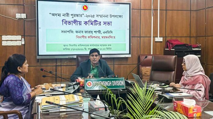 গোলাম কিবরিয়া পলাশ, ময়মনসিংহ প্রতিনিধিঃ অদম্য নারী পুরস্কার-২০২৫ সম্মাননা উপলক্ষ্যে বিভাগীয় কমিটির সভা মঙ্গলবার (১৭ ফেব্রুয়ারি) ময়মনসিংহ বিভাগীয় কমিশনার কার্যালয়ের সম্মেলন কক্ষে অনুষ্ঠিত হয়। এতে সভাপতিত্ব করেন অতিরিক্ত বিভাগীয় কমিশনার