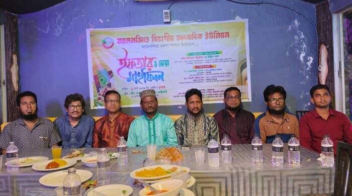 নিজস্ব প্রতিনিধিঃ পবিত্র মাহে রমজান উপলক্ষে ময়মনসিংহ বিভাগীয় সাংবাদিক ইউনিয়নের ময়মনসিংহ জেলা শাখার উদ্যোগে এক আন্তরিক পরিবেশে ইফতার ও দোয়া মাহফিল অনুষ্ঠিত হয়েছে। বুধবার (১১ মার্চ) নগরীর গ্রীন পার্ক রেস্টুরেন্টে