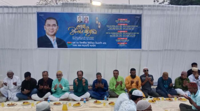 গোলাম কিবরিয়া পলাশ, ময়মনসিংহ ময়মনসিংহ সদর উপজেলার ৭নং চর নিলক্ষীয়া ইউনিয়নে বাংলাদেশ জাতীয়তাবাদী দল (বিএনপি) ও এর অঙ্গ-সহযোগী সংগঠনের উদ্যোগে এক দোয়া ও ইফতার মাহফিল অনুষ্ঠিত হয়েছে। সোমবার (৯ মার্চ)