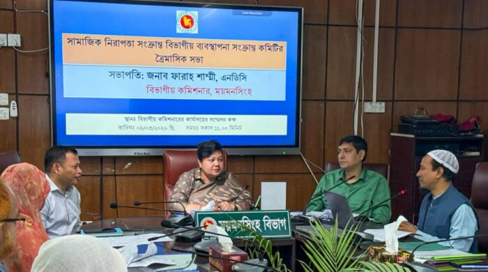 গোলাম কিবরিয়া পলাশ, ময়মনসিংহ প্রতিনিধি: সামাজিক নিরাপত্তা সংক্রান্ত বিভাগীয় ব্যবস্থাপনা কমিটির ত্রৈমাসিক সভা সোমবার (০৯ মার্চ) অনুষ্ঠিত হয়। বিভাগীয় কমিশনার কার্যালয়ের সম্মেলন কক্ষে আয়োজিত এ সভায় সভাপতিত্ব করেন ময়মনসিংহের বিভাগীয়
