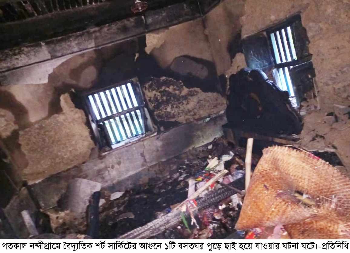দেখতে পেয়ে স্থানীয়রা নন্দীগ্রাম ফায়ার সার্ভিসে খবর দেয়। ফায়ার সার্ভিস কর্মীরা গিয়ে আগুন যতক্ষণে নিয়ন্ত্রণে আনেন ততক্ষণে ওই পরিবারের সব কিছু পুড়ে ছাই হয়ে যায়। এতে প্রায় ওই পরিবারের চার লক্ষাধিক টাকার ক্ষয়ক্ষতি হয়েছে বলে জানা যায়। মৃত জুলফিকার আলী তানসেনের মেয়ে তামান্না আক্তার জানান, আমার বাবা নন্দীগ্রাম সাবরেজিস্টার অফিসের দলিল লেখক ছিলেন, পরিবারের একমাত্র আয়ের উৎস ছিল আমার বাবা, বাবার কিডনি নষ্ট হয়ে যাওয়ার কারণে অনেক ব্যয়বহুল খরচ করে ও বাবাকে বাঁচাতে পারিনি। সংসার চালানোর তাগিদে আমার বড় ভাই ঢাকাতে চাকুরি করে। বাড়িতে কেউ থাকতো না ঈদের আগেই বাড়িতে আসি। বাড়িতে ঈদ করে গত দুদিন আগে ভাগবজর খালাদের বাড়িতে বেড়াতে যাই, কিন্তু হঠাৎ রবিবার সকালে পাশের বাড়ির আন্টি আগুন লাগার খবর দেয়। বাসায় এসে দেখি একটি ঘর সহ ঘরের সমস্ত আসবাবপত্র পুড়ে ছাই হয়ে গিয়েছে। বাবার রেখে যাওয়া কাগজপত্র জমা জমির দলিল, টিভি, ফ্রিজ, আলমারি, শোকেস, ড্রেসিং টেবিল, সোফা, দামি দামি শাড়ি, আলমারিতে রাখা টাকা, স্বর্ণালংকার সহ সমস্ত আসবাবপত্র পুড়ে ছাই হয়ে গিয়েছে। খবর পেয়ে ফায়ার সার্ভিস কর্মীরা দ্রুত ছুটে এসে আগুন নিয়ন্ত্রণে আনে। তিনি আরো বলেন, অনেক কষ্ট করে আমার বাবা এসব আসবাবপত্র ক্রয় করেছিলেন। বাবা চলে যাওয়ার পর সেসব জিনিসপত্র বাবার রেখে যাওয়া স্মৃতি হিসেবে ছিল। যা নিমিষেই শেষ হয়ে গেল। এখন পরিবার নিয়ে মাথা গোজার ঠাঁই টুকুও আমাদের নেই।
