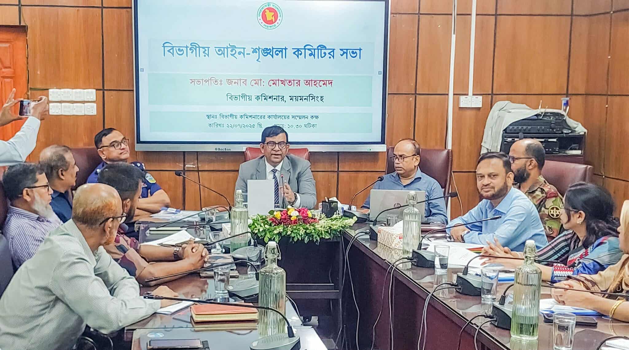 বিভাগীয় আইনশৃঙ্খলার নবগঠিত কমিটির সমন্বয় সভা মঙ্গলবার (২২জুলাই) ময়মনসিংহ বিভাগীয় কমিশনার কার্যালয়ের সম্মেলন কক্ষে অনুষ্ঠিত হয়। এতে সভাপতিত্ব করেন বিভাগীয় কমিশনার মো: মোখতার আহমেদ। এছাড়াও ময়মনসিংহ রেঞ্জ ডিআইজি, চার জেলার জেলা প্রশাসক, সংশ্লিষ্ট দপ্তরের প্রধানগণ, রাজনৈতিক নেতৃবৃন্দ এবং বৈষম্য বিরোধী ছাত্র আন্দোলনের প্রতিনিধি উপস্থিত ছিলেন।
