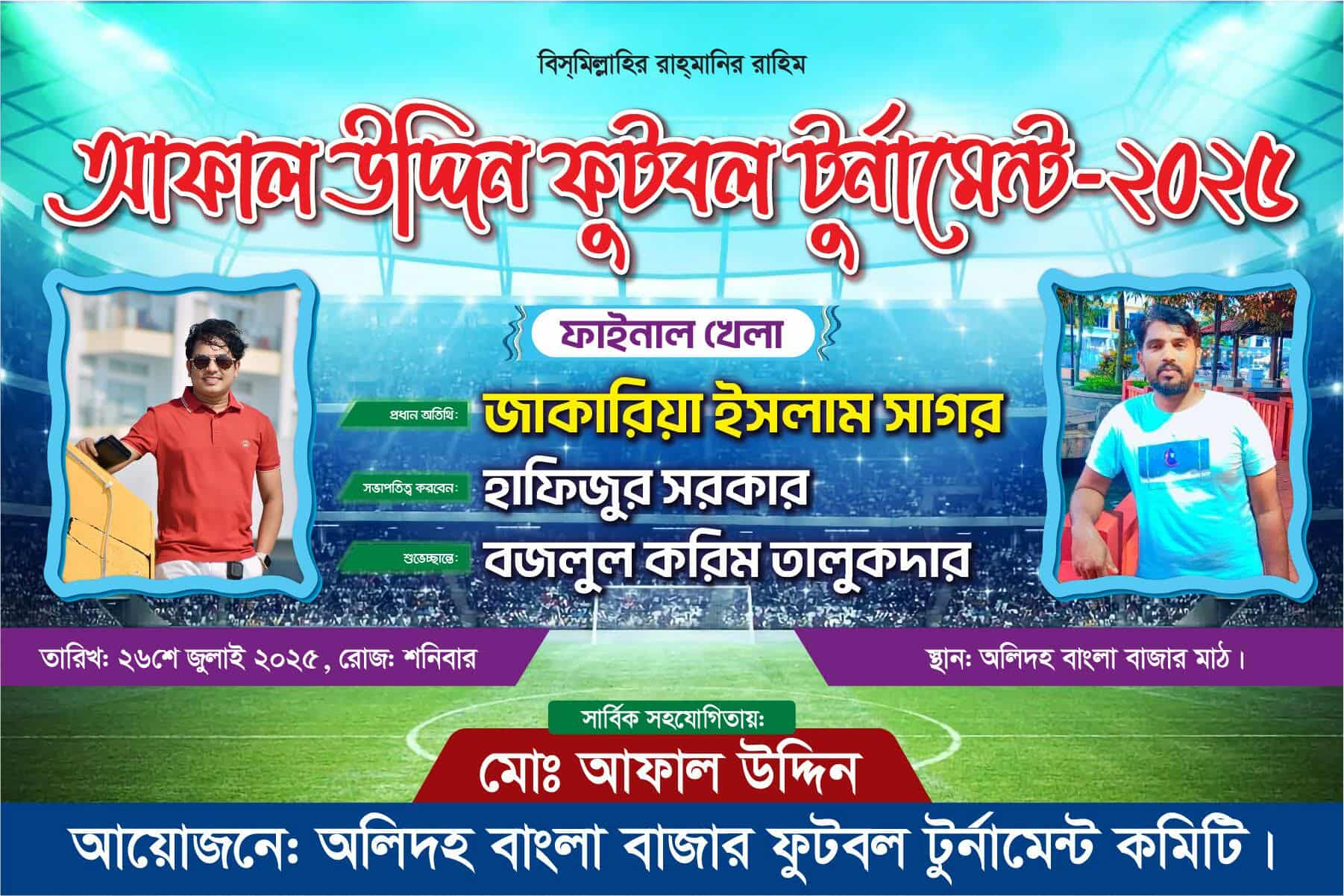 সিরাজগঞ্জের সলঙ্গায় অলিদহ বাংলা বাজার ফুটবল টুর্নামেন্ট কমিটি কর্তৃক আয়োজিত