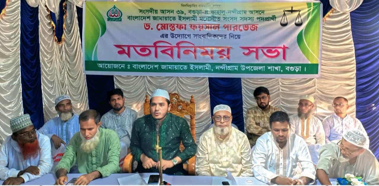 বগুড়া-৪ (কাহালু-নন্দীগ্রাম) আসনে জামায়াত মনোনীত প্রার্থী ড. মোস্তফা ফয়সাল পারভেজের নন্দীগ্রামের সাংবাদিকদের সাথে মতবিনিময় সভা অনুষ্ঠিত হয়েছে।