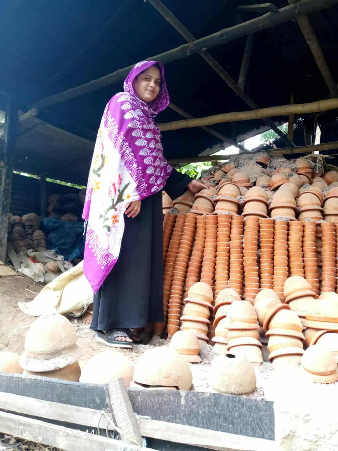 তিনি আরও বলেন, খুব অল্প বয়স থেকেই বাবার সঙ্গে এ কাজ শুরু করেছি। বিয়ের পর স্বামীর বাড়িতে এসে এ কাজ করছি। স্বামীর সঙ্গে সংসারের হাল ধরেছি। কিন্তু এখন খুব কম চলে মাটির পাত্র। বাপ-দাদার কর্ম ছেড়ে যেতেও পারি না। তাই কোনো মতে কিছু বাসনপত্র বানিয়ে বিক্রি করে সংসার চলে।