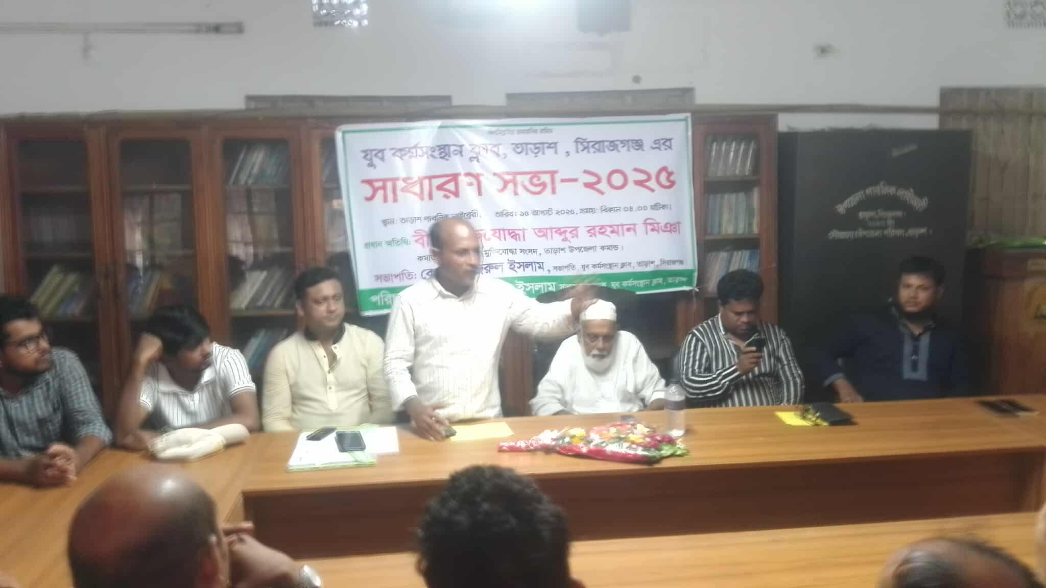 সিরাজগঞ্জের তাড়াশে যুব কর্মসংস্থান ক্লাবের উদ্বোধন ও সাধারণ সভা অনুষ্ঠিত হয়েছে। ১৫ আগষ্ট শুক্রবার বিকালে ওই ক্লাবের সভাপতি কেএম নজরুল ইসলামের সভাপতিত্বে এ উদ্বোধন অনষ্ঠান অনুষ্ঠিত হয়। এ সময় এ অনুষ্ঠানে প্রধান অতিথি হিসেবে উপস্থিত ছিলেন্ উপজেলা মুক্তিযোদ্ধা সংসদের সাবেক কমান্ডার বিশিষ্ট মুক্তিযোদ্ধা মোঃ আব্দুর রহমান মিঞা। বিশেষ অতিথি হিসেবে উপস্থিত ছিলেন বাংলাদেশ জাতীয়তাবাদী স্বেচ্ছাসেবক দল কেন্দ্রীয় সংসদ এর যোগাযোগ বিষয়ক সম্পাদক, রংপুর বিভাগীয় সংগঠনিক টিম ও এমপি মনোনয়ন প্রত্যাশী মোঃ আব্দুল আলীম, উপজেলা বিএনপির সাবেক তথ্য ও গবেষণা বিষয়ক সম্পাদক ও তাড়াশ প্রেসক্লাবের সাধারণ সম্পাদক এম সানোয়ার হোসেন সাজু,যুগ্ম সাধারণ সম্পাদক মোঃ মহসীন আলী। জানা গেছে, যুবকদের কর্মসংস্থানের জন্য, অসহায় হত দরিদ্র পরিবারের মাঝে সহায়তা প্রদান,এছাড়াও এছাড়াও যেকোনো দুর্যোগে অসহায় মানুষের পাশে , অসহায় পরিবারের কন্যা দানের সাহায্যের উদ্দেশ্যে এ ক্লাবের সৃষ্টি করা হয়েছে। উক্ত অনুষ্ঠানটি পরিচালনা করেন যুব কর্মসংস্থান ক্লাবের সাধারণ সম্পাদক শরিফুল ইসলাম।