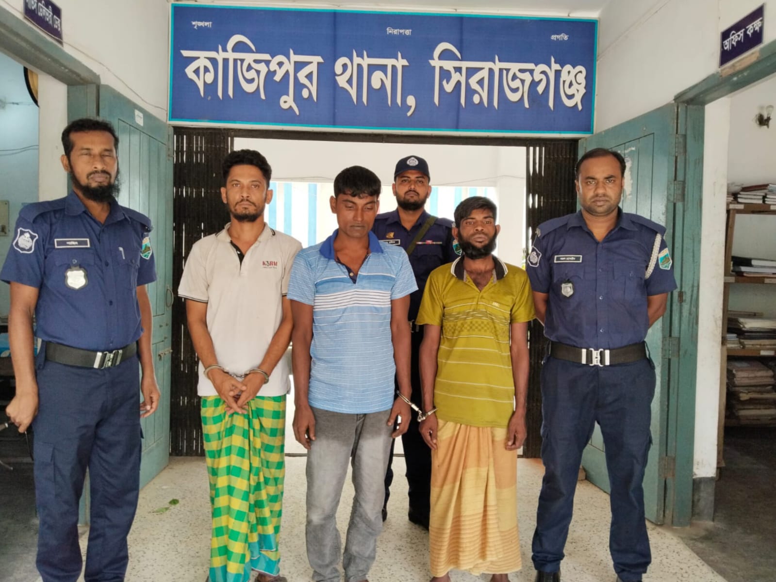 সিরাজগঞ্জের কাজিপুর থানা পুলিশ পৃথক অভিযান চালিয়ে তিনজন মাদক সেবীকে গ্রেপ্তার করেছে। গত বৃহস্পতিবার বিকেলে ও রাতে চালানো হয়। এই অভিযানে গ্রেপ্তারকৃতরা হলেন ভেটুয়া জগন্নাথপুর গ্রামের আতা খাঁর এর পুত্র লালন খা (৩৫) এবং রৌহাবাড়ী গ্রামের মৃত লতিফ এর পুত্র নান্নু শেখ (৩৫) ও একই গ্রামের মৃত আবুল হোসেনের পুত্র গোলাম মোস্তফা (৩৬)
