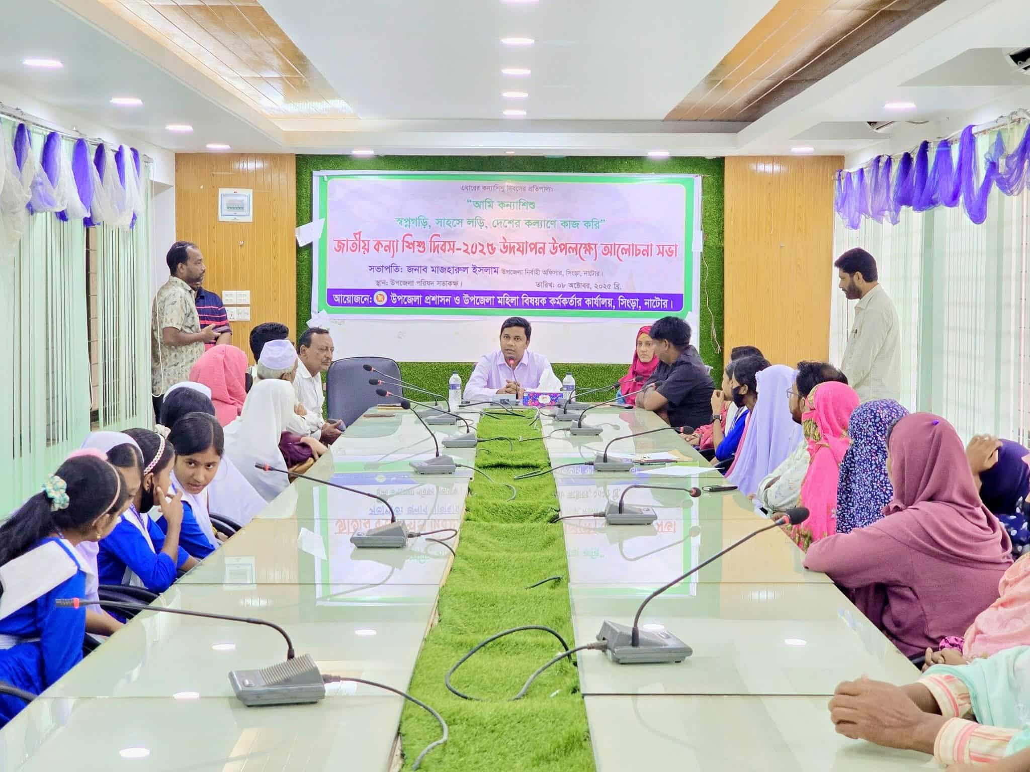 "আমি কন্যাশিশু, স্বপ্নগড়ি, সাহসে লড়ি, দেশের কল্যাণে কাজ করি" এই প্রতিপাদ্যকে সামনে রেখে (৮ অক্টোবর), ২০২৫ তারিখে নাটোরের সিংড়া উপজেলা পরিষদ সভা কক্ষে জাতীয় কন্যা শিশু দিবস-২০২৫ উদযাপন উপলক্ষ্যে এক আলোচনা সভা অনুষ্ঠিত হয়। উপজেলা প্রশাসন ও উপজেলা মহিলা বিষয়ক কর্মকর্তার কার্যালয়ের যৌথ আয়োজনে অনুষ্ঠিত এই সভায় সভাপতিত্ব করেন উপজেলা নির্বাহী অফিসার জনাব মাজহারুল ইসলাম।