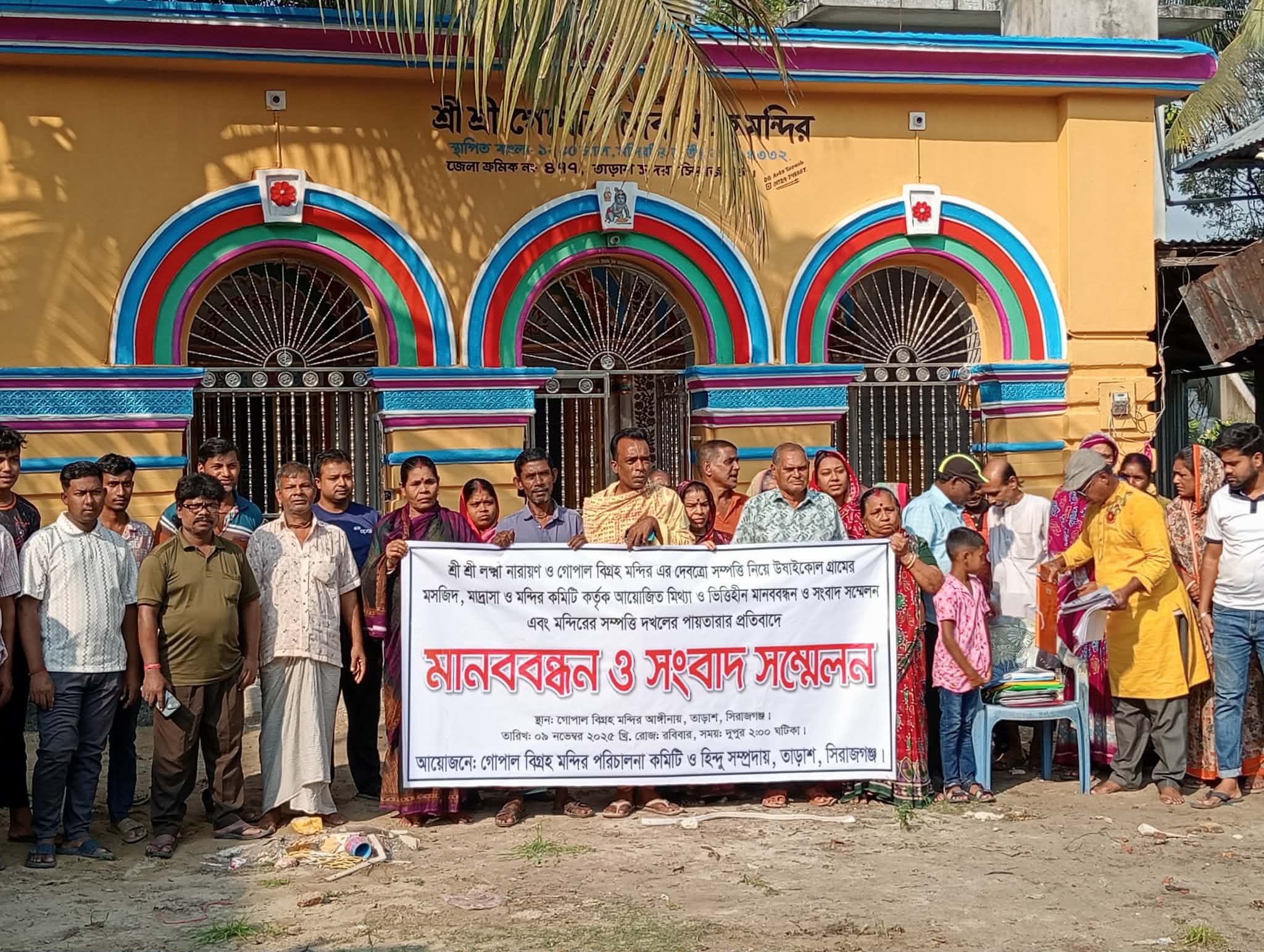সিজগঞ্জের তাড়াশে শ্রী শ্রী লক্ষ্মী নারায়ণ ও গোপাল বিগ্রহ মন্দির এর দেবোত্তর সম্পত্তি নিয়ে উষাইকোল গ্রামের মসজিদ, মাদ্রাসা ও মন্দির কমিটি কর্তৃক আয়োজিত মিথ্যা ও ভিত্তিহীন মানববন্ধন ও সংবাদ সম্মেলন এবং মন্দিরের সম্পত্তি দখলের পায়তারার প্রতিবাদে মানববন্ধন ও সংবাদ সম্মেলন অনুষ্ঠিত হয়েছে।