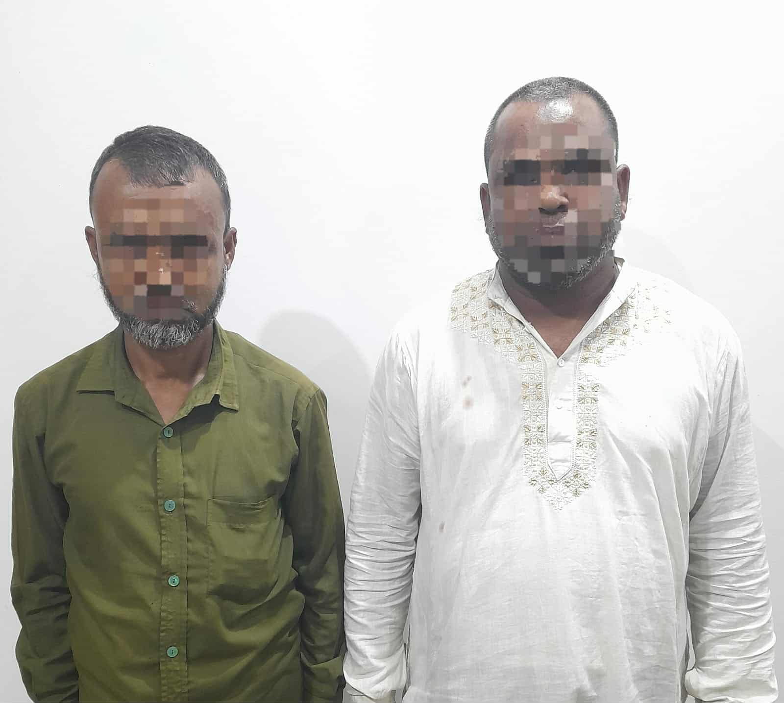 গ্রেফতারকৃতরা হলেন কুড়িগ্রাম জেলার নাগেশ্বরী থানার আকালুর ভিটা গ্রামের মৃত আবু বক্কর সিদ্দিকের ছেলে মোঃ জুলহাস মিয়া (৪৮) এবং একই থানার মালভাঙ্গা গ্রামের মৃত আজিতুল্লাহর ছেলে মোঃ আলতাব হোসেন (৪৮)।