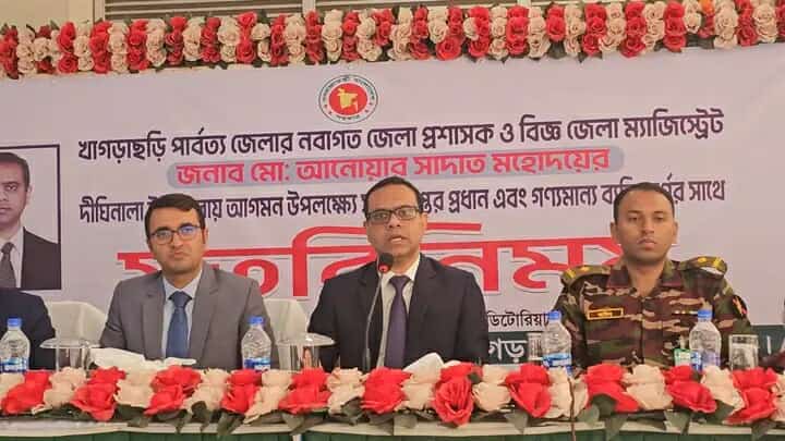 খাগড়াছড়ি জেলা প্রশাসক মো. আনোয়ার সাদাত বলেন, এই অঞ্চলের মানুষের ভাগ্য উন্নয়নে সকলের সহযোগিতা নিয়ে সর্বোচ্চ আন্তরিকতা দিয়ে মানুষের জন্য কাজ করবে। সামাজিক যোগাযোগ মাধ্যমে গুজবের বিষয়ে সর্তক থাকতে হবে। তিনি আরও বলেন, “আগামী জাতীয় সংসদ নির্বাচন অবাধ, সুষ্ঠু ও নিরপেক্ষভাবে সম্পন্ন করতে প্রশাসন ইতোমধ্যেই কাজ করছে। স্বাস্থ্য, শিক্ষা, কৃষি ও পর্যটনের উন্নয়নে যে অভিযোগ ও পরামর্শ এসেছে, তা সমন্বিতভাবে পর্যালোচনা করে বাস্তবমুখী পরিকল্পনা নেওয়া হবে।”