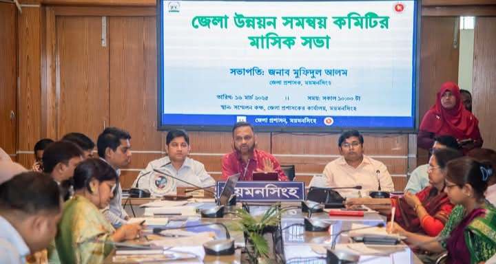 ময়মনসিংহ জেলা উন্নয়ন সমন্বয় কমিটির মাসিক সভা অনুষ্ঠিত হয়েছে। রবিবার (১৬ মার্চ) ময়মনসিংহ জেলা প্রশাসক কার্যালয়ের আয়োজনে দপ্তরের সম্মেলন কক্ষে এই সভা অনুষ্ঠিত হয়। সভায় সভাপতি হিসেবে উপস্থিত ছিলেন ময়মনসিংহ জেলা প্রশাসক মুফিদুল আলম।