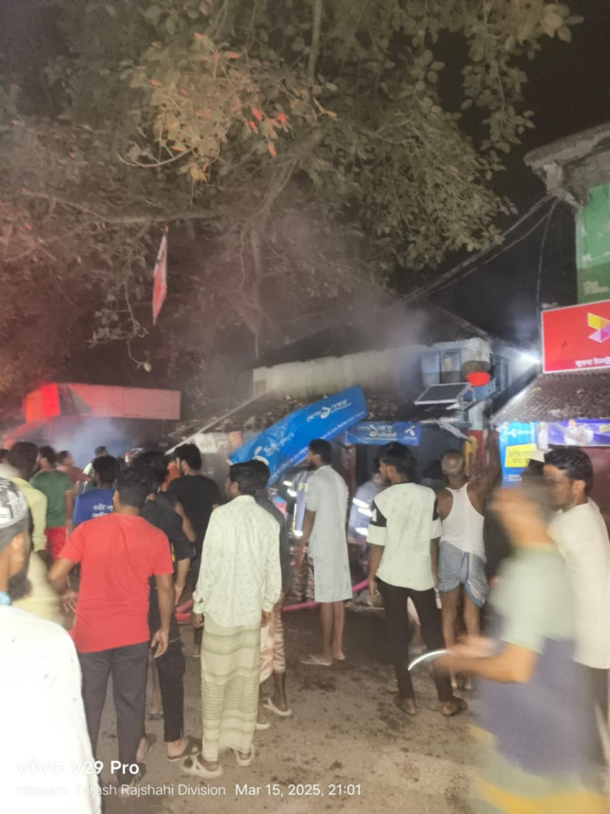প্রত্যক্ষদর্শী সূত্রে জানা গেছে, শনিবার রাতে পৌর শহরের হাসপাতাল গেটে এলাকার মুদি দোকানদার খোকন দোকান বন্ধ করে তারাবির নামাজ আদায় করতে যান। এ সময় দোকানের মধ্যে জালিয়ে রাখা মশার কয়েল থেকে আগুনের সূত্রপাত হয়ে সমস্ত দোকানে ছড়িয়ে পড়ে। খবর পেয়ে তাড়াশ উপজেলার ফায়ার সার্ভিস ও সিভিল ডিফেন্স দ্রত ঘটনা স্থলে পৌছে আগুন নিয়ন্ত্রনে আনেন।