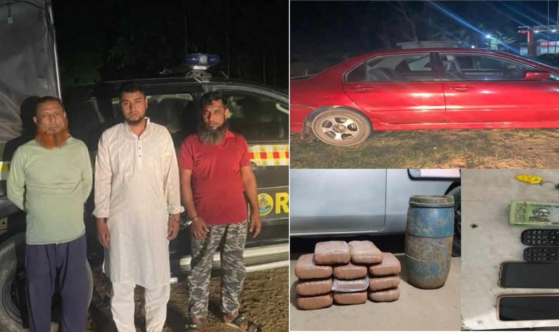 গতকাল (৫ এপ্রিল) রাত ৯টায় নেত্রকোণা জেলার দুর্গাপুর থানাধীন পৌরসভার ২নং ওয়ার্ডের বুরুঙ্গা এলাকার দুর্গাপুর-ময়মনসিংহগামী পাকা রাস্তার বুরুঙ্গা বাইতুল আতিক জামে মসজিদের সামনে একটি চেকপোস্ট পরিচালনা করে র্যাব সদস্যরা। এ সময় একটি মেরুন রঙের প্রাইভেটকারে তল্লাশি চালিয়ে ৪ কেজি গাঁজাসহ তিন মাদক কারবারিকে গ্রেপ্তার করা হয়।