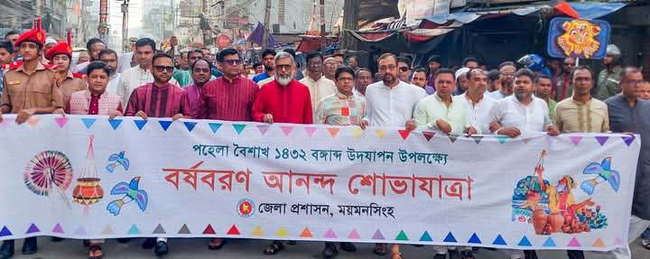 বাঙালির প্রাণের উৎসব পহেলা বৈশাখ ১৪৩২ সারা দেশের মতো ময়মনসিংহেও উদযাপিত হয়েছে উৎসাহ-উদ্দীপনার মধ্য দিয়ে। বাংলা নতুন বছরকে স্বাগত জানাতে জেলা প্রশাসনের উদ্যোগে আয়োজন করা হয় বর্ণাঢ্য আনন্দ শোভাযাত্রা।