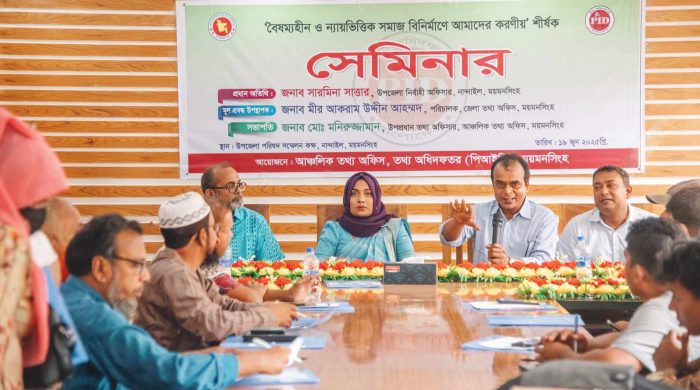 গোলাম কিবরিয়া পলাশ, ব্যুরো প্রধান ময়মনসিংহঃ ময়মনসিংহ জেলার নান্দাইল উপজেলায় আঞ্চলিক তথ্য অফিস, ময়মনসিংহের আয়োজনে ‘বৈষম্যহীন ও ন্যায়ভিত্তিক সমাজ বিনির্মাণে আমাদের করণীয়’ শীর্ষক সেমিনার অনুষ্ঠিত হয়েছে। নান্দাইল উপজেলা পরিষদ সম্মেলনকক্ষে