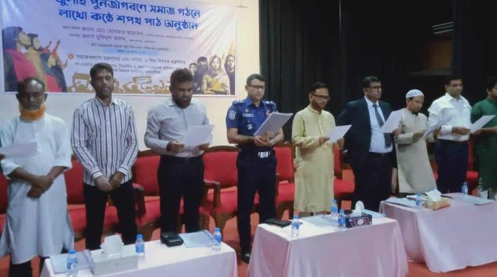 গোলাম কিবরিয়া পলাশ, ব্যুরো প্রধান, ময়মনসিংহঃ ময়মনসিংহ জেলা প্রশাসন, বিভাগীয় ও জেলা সমাজসেবা কার্যালয় এবং মহিলা বিষয়ক অধিদপ্তরের জেলা কার্যালয়ের যৌথ আয়োজনে ‘জুলাই পুনর্জাগরণে সমাজ গঠনে লাখো কন্ঠে শপথ পাঠ