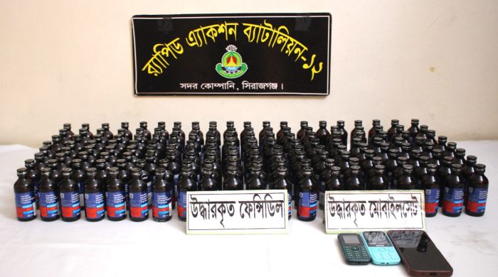 মজিবর রহমান সিরাজগঞ্জে ১৫৮ বোতল ফেনসিডিলসহ তিন মাদক কারবারিকে আটক করেছে র্যাপিড এ্যাকশন ব্যাটালিয়ন র্যাব ১২ । সিরাজগঞ্জ জেলার সলংগা থানাধীন সাতটিকরী তালতলা বাজার এলাকায় ছাইফা হোটেল এন্ড রেস্টুরেন্ট এর