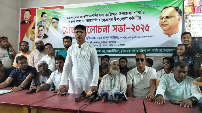 মাহমুদুল হাসান শুভ , কাজিপুর (সিরাজগঞ্জ) প্রতিনিধি: বাংলাদেশ জাতীয়তাবাদী দল (বিএনপি) সিরাজগঞ্জ জেলার কাজিপুর উপজেলা শাখার উদ্যোগে অঙ্গ ও সহযোগী সংগঠনের অংশগ্রহণে এক প্রাণবন্ত যৌথ আলোচনা সভা–২০২৫ অনুষ্ঠিত হয়েছে। শুক্রবার